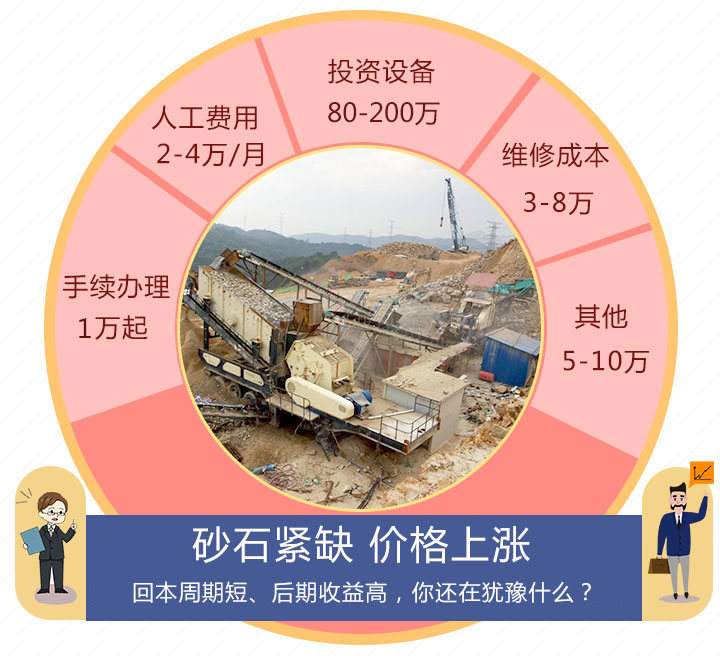 綜合下來,其中占比較多的還是設(shè)備—80到200萬以上。固定式設(shè)備可能會相對便宜一些,但對于場地、作業(yè)環(huán)境以及人力要求較高,所以通常都會選擇移動破碎設(shè)備,適應(yīng)能力強、占地面積小、生產(chǎn)效率高、后期轉(zhuǎn)場方便,單臺或多臺設(shè)備作業(yè)均可,用戶有多種選擇。