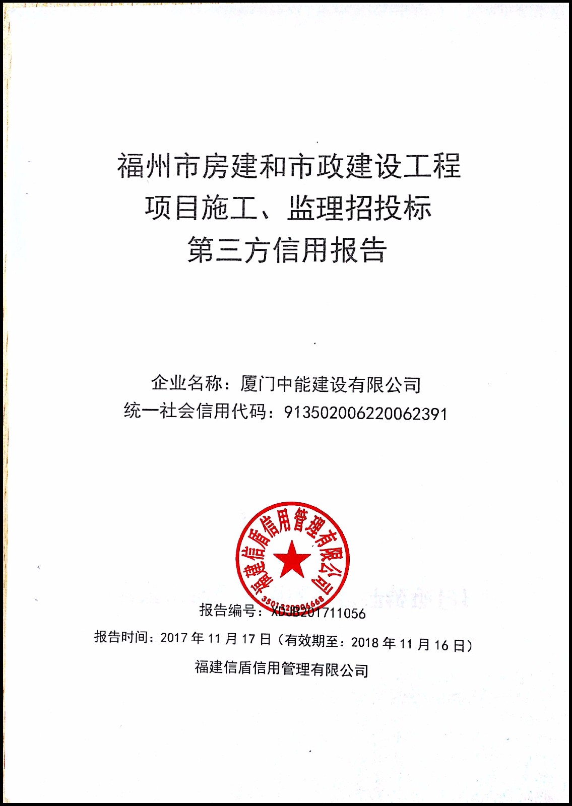 廈門中能建設(shè)有限公司 XDJB201711056