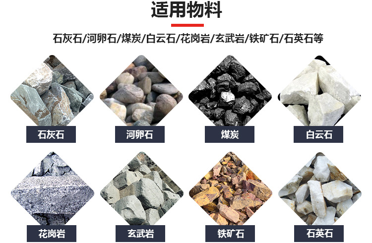 【適用物料】:河卵石、花崗巖、玄武巖、鐵礦石、石灰石、石英石、輝綠巖、鐵礦、金礦、銅礦等。