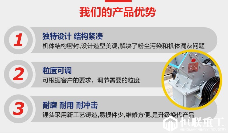 錘式破碎機(jī)結(jié)構(gòu)密封,解決了破碎車間的粉塵污染和機(jī)體漏灰問題。破碎比大、效率高