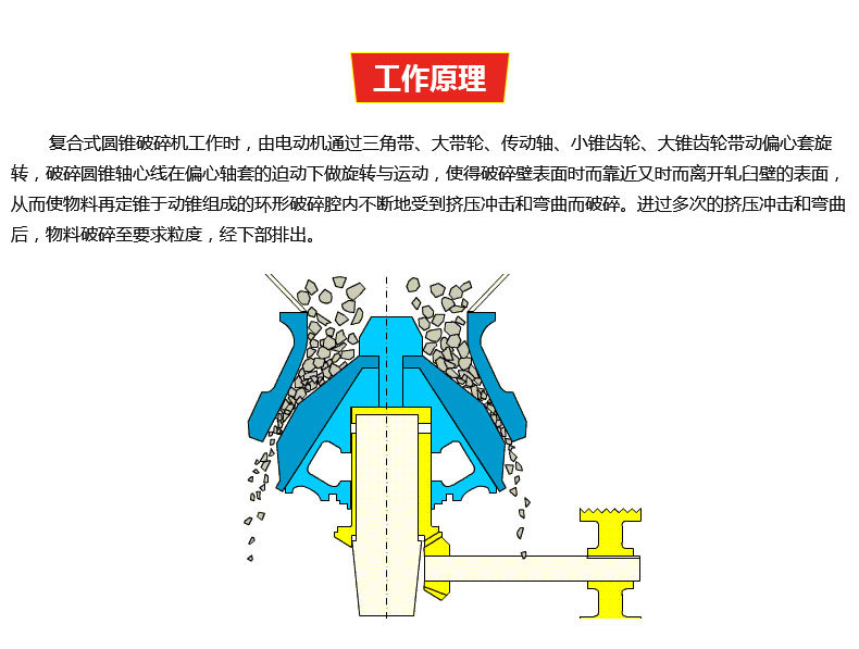 復(fù)合式圓錐破碎機(jī)是基于層壓破碎原理和多破少磨概念設(shè)計(jì)研發(fā)的集高擺頻、優(yōu)化腔型和合理沖程于一體的高性能彈簧圓錐破。