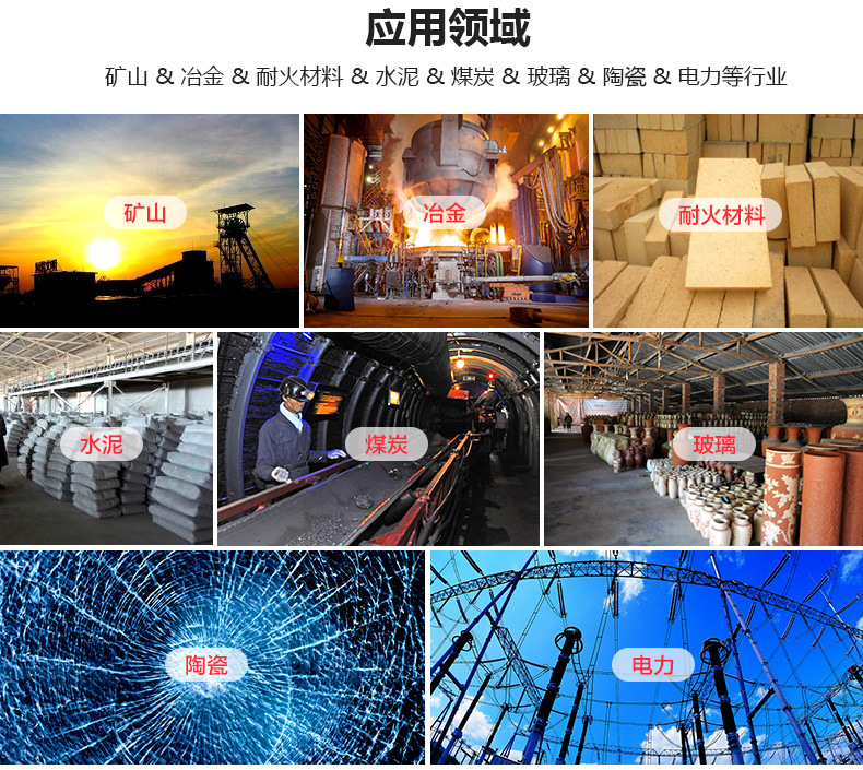 【應(yīng)用范圍】:礦山、冶金、耐材、水泥、煤炭、玻璃、陶瓷、電力等行業(yè)。