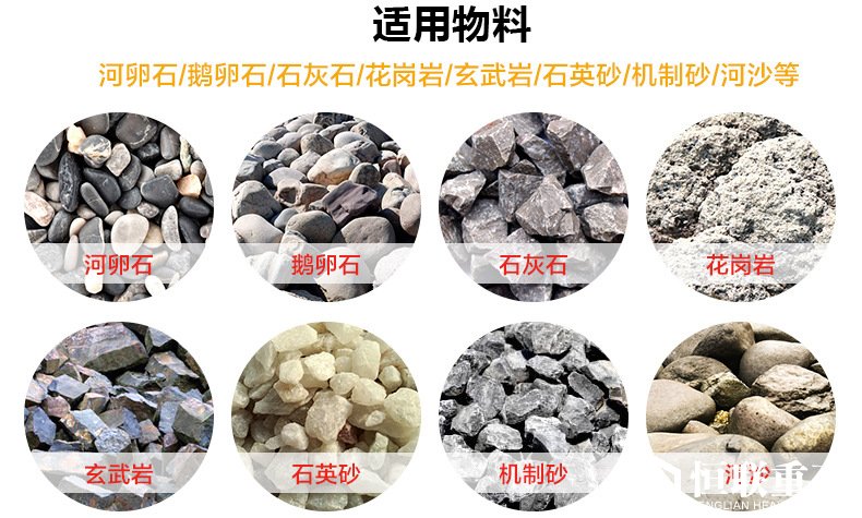 【適用物料】:河卵石、鵝卵石、石灰石、花崗巖、石英砂、自然砂、機制砂、河沙等。