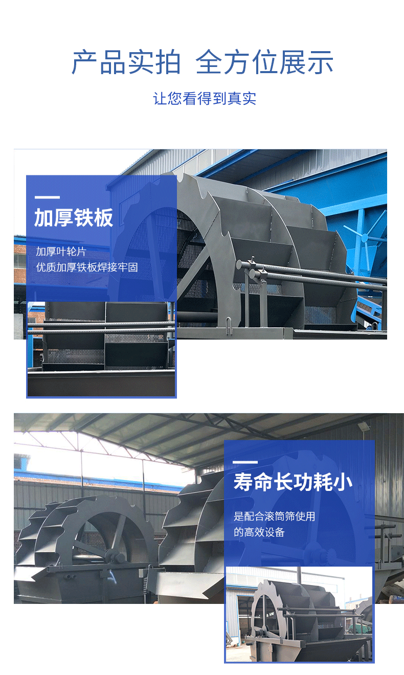 本公司生產的XSD洗沙機是一種輪斗式洗選設備,可清洗分離砂石中的石粉泥土,其新穎的密封結構,可靠的傳動裝置,確保了清洗脫水的效果,是配合制砂機使用的一種高效洗砂設備。
