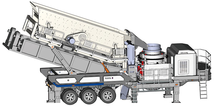 3、獨立作業(yè)移動式石子破碎機:砂石料場存在大量無需粗破的中小粒徑原礦石土層,直接對其預篩分,配備有預篩分的篦條料倉的移動式石子破碎機是更好選擇。