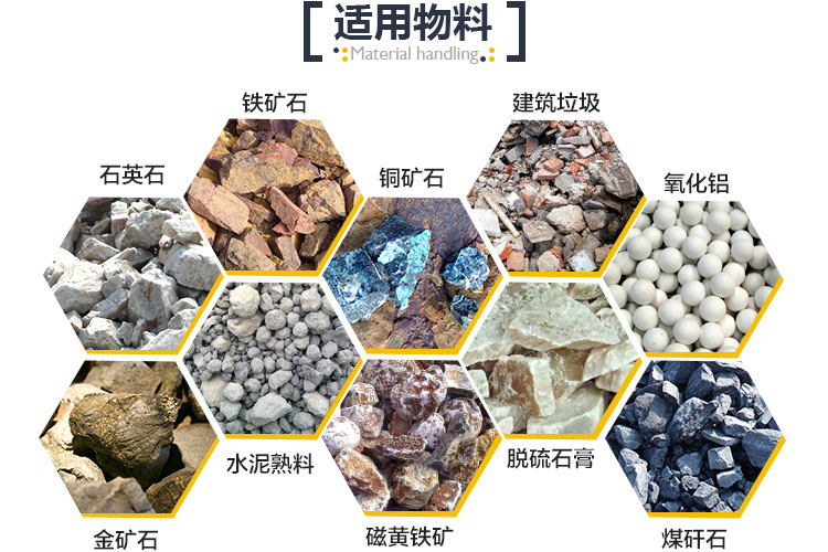 【適用物料】:石英石、金礦石、鐵礦石、水泥熟料、銅礦石、磁黃鐵礦、建筑垃圾、玻璃等。