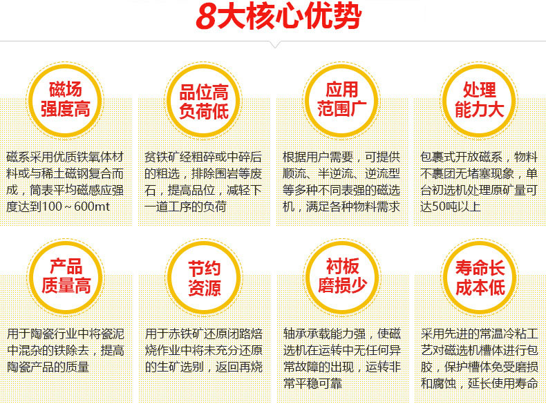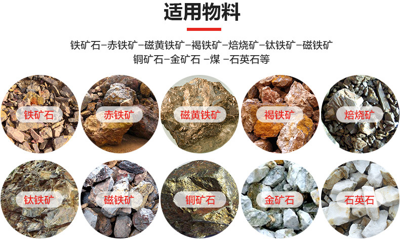 【適用物料】:鐵礦石、赤鐵礦、磁黃鐵礦、褐鐵礦、焙燒礦、鈦鐵礦、磁鐵礦、銅礦石、金礦石、煤、石英石等。