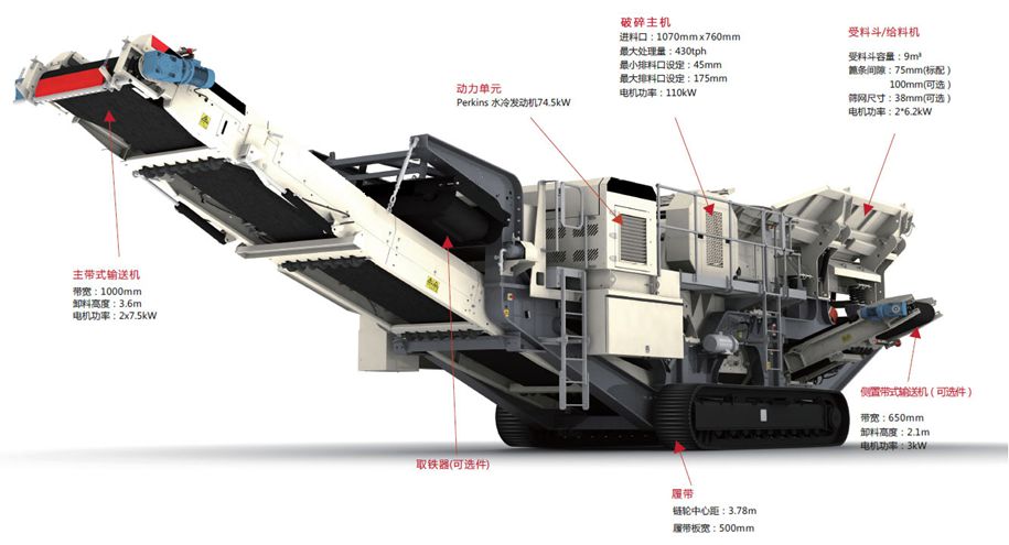 恒聯(lián)重工履帶式移動破碎站是一種高效率的破碎設備,采用自行驅動方式,技術**,功能齊全。在任何地形條件下,此設備均可達到工作場地的任意位置,方便全部輔助機械設備的協(xié)調。通過無線遙控操縱,可以非常容易地把破碎機開到拖車上,并將其運送至作業(yè)地點。因為無須裝配時間,所以設備一到作業(yè)場地即可立即投入工作。履帶式圓錐移動破碎站是一臺用于粗碎和中碎的移動式履帶自行驅動破碎機,其融合了產量高、給料口大和結構緊湊等諸多特性。該破碎站配備市場上備受歡迎的PSGB系列液壓圓錐破碎機,該液壓圓錐破碎機有1000多臺的優(yōu)異銷售業(yè)績!