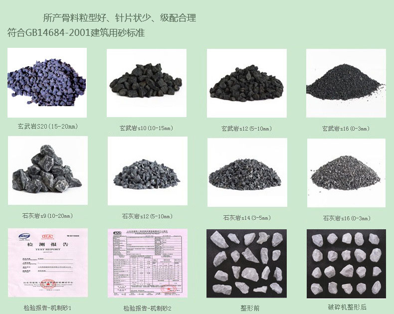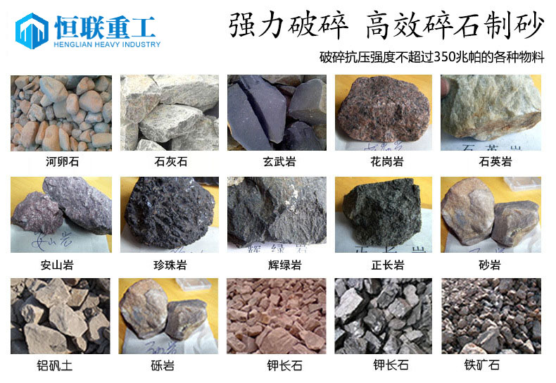 【適用物料】:河卵石、山石(石灰石、花崗巖、玄武巖、輝綠巖、安山巖等)、礦石尾礦等。