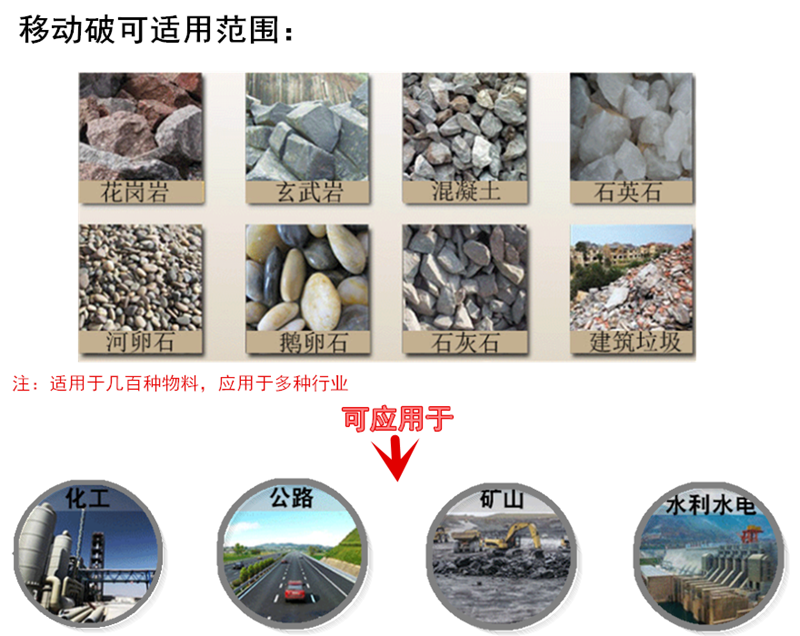 【適用物料】:建筑垃圾、建筑廢料、廢鋼筋、煤矸石、方解石、花崗石、白云巖,河卵石、混凝土等